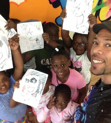 Antonio believes art isn't a luxury, it's a necessity. It's how we see ourselves, connect with others, and imagine what's possible. Every sketch, every workshop, every event is an opportunity to remind someone: You matter. You're special. Go be super.